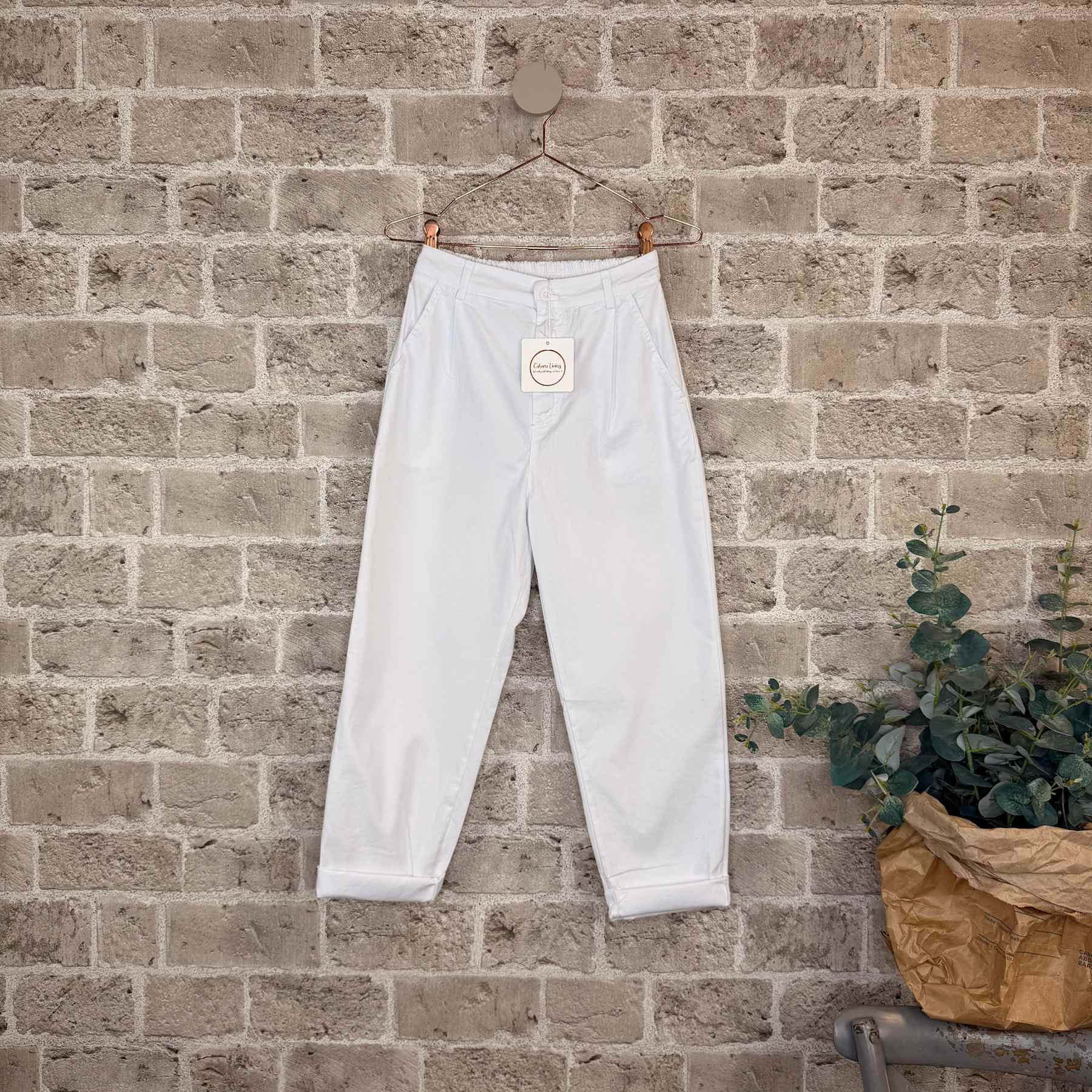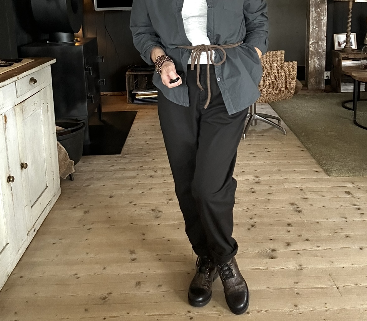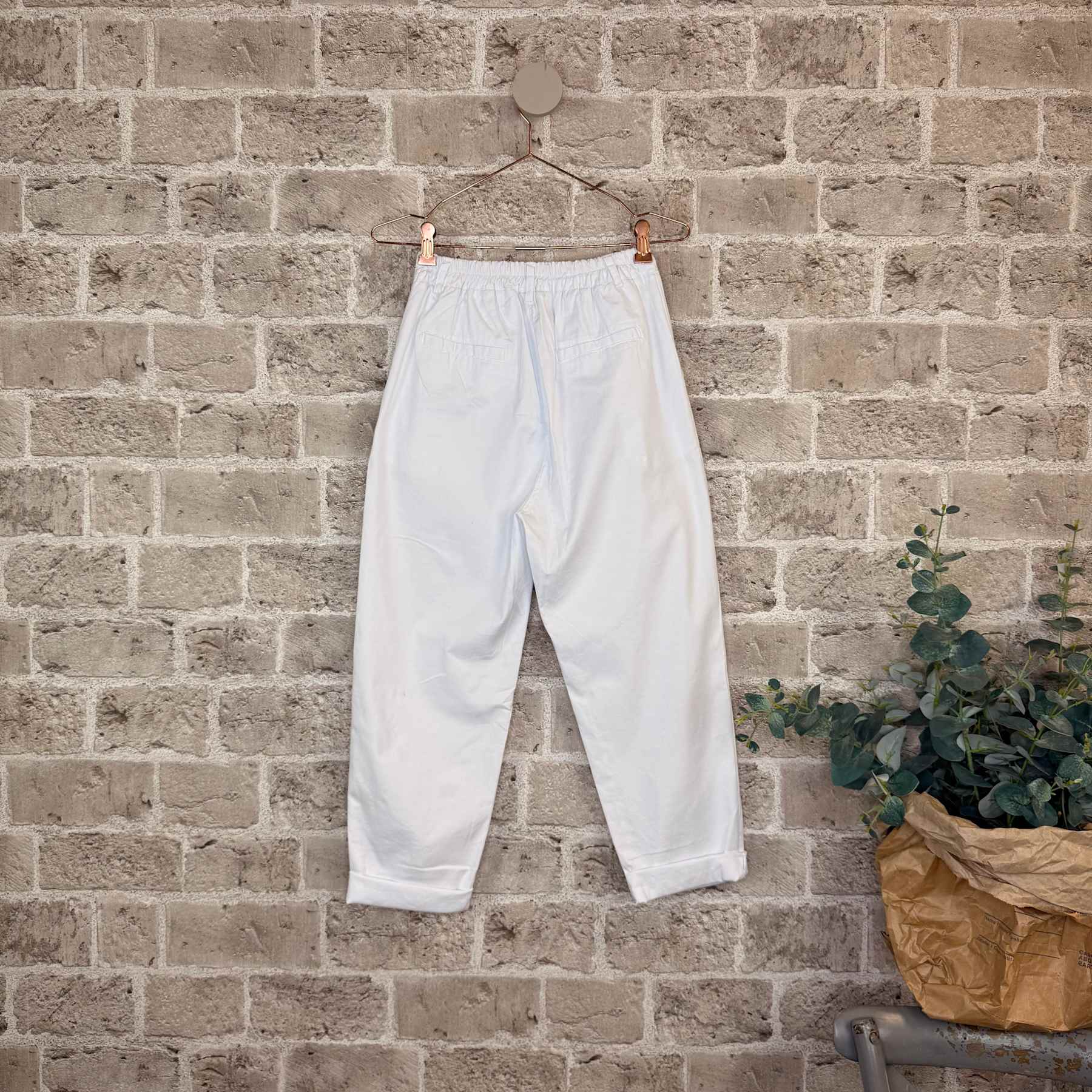 Chinos bomulls bukse med vidde, belte stropper og strikk bak