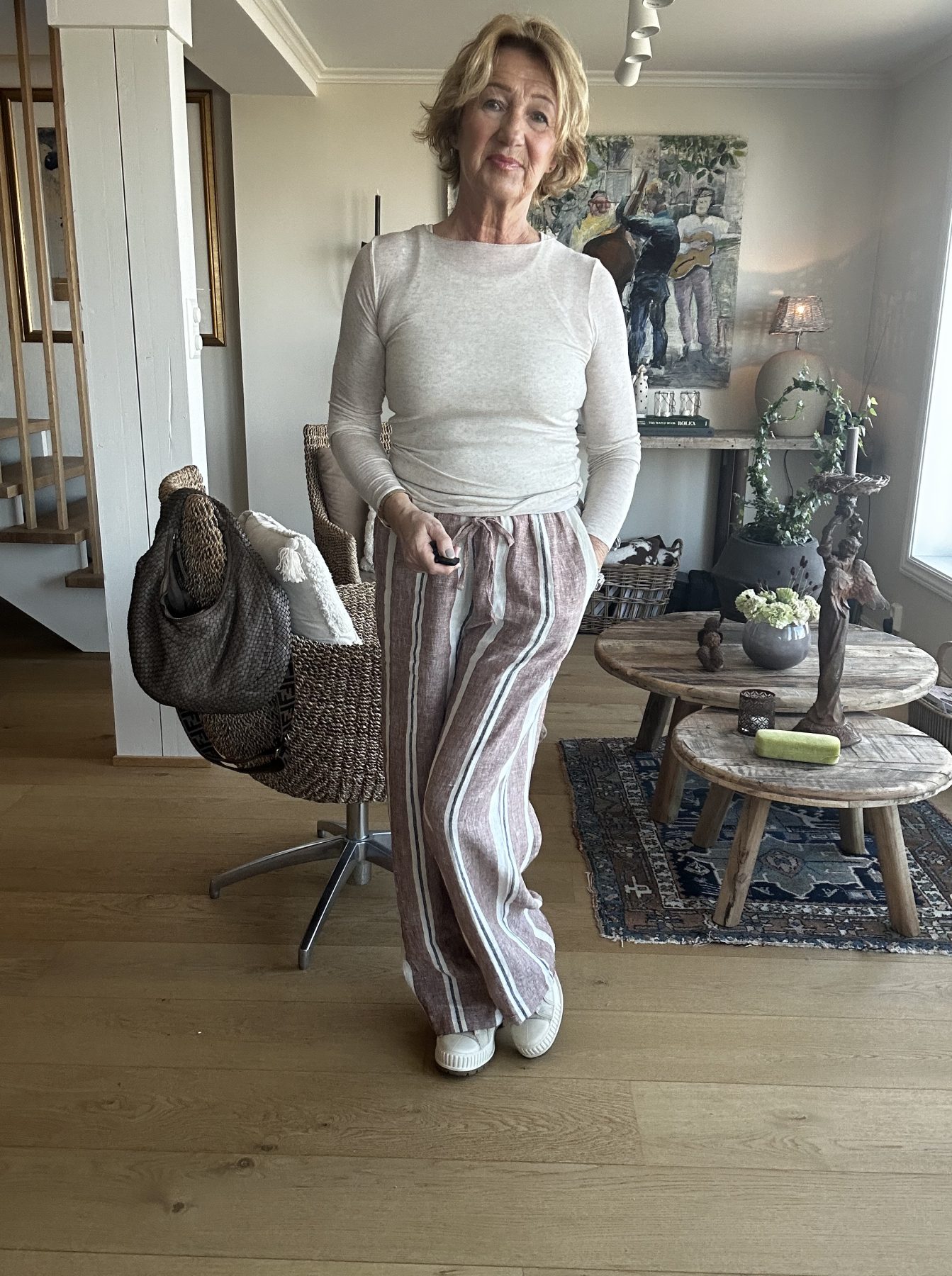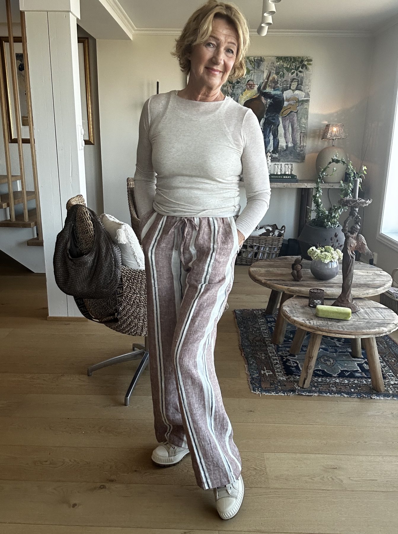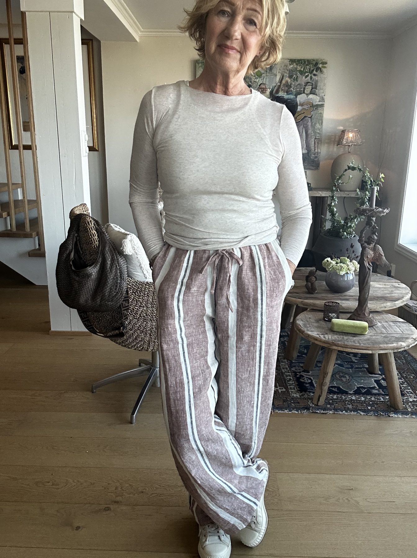 stor i str , strikk i livet og lommer i siden.